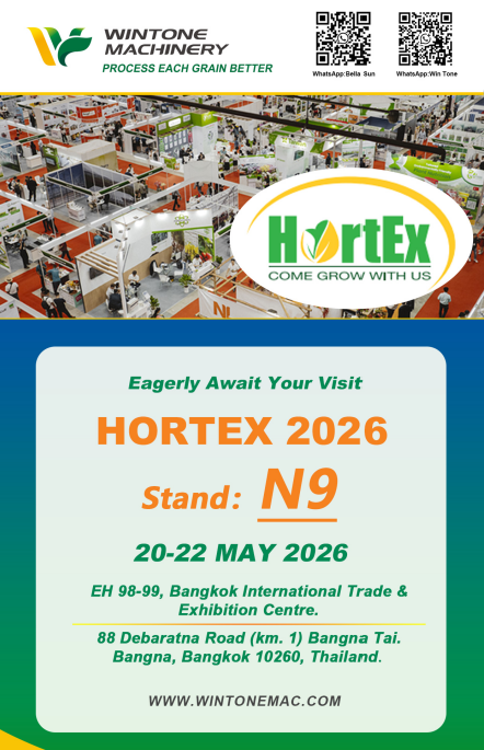 HORTEX 2026 will be held from May 20th to 22nd, at the BITEC Exhibition Center in Bangkok, Thailand. Win Tone will showcase its latest engineering technologies and solutions at Booth N9, Hall EH 98 - 99. We look forward to meeting you and discussing the innovation and development of the intelligent miscellaneous grain processing industry.